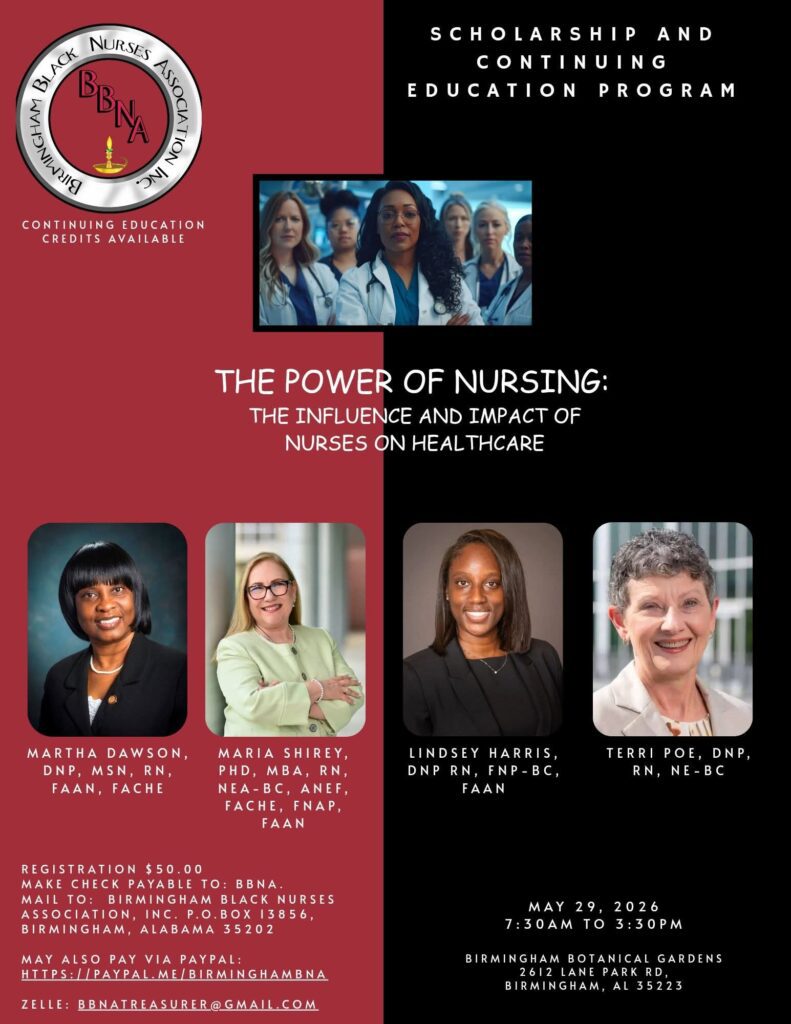 BBNA sponsors professional nursing workshops, mentors nursing students, conducts community health fairs, supports community healthcare initiatives, and participates in community service projects. Health promotion, disease prevention, and health education services are important strategies as BBNA continues to pursue quality healthcare for all Alabamians.